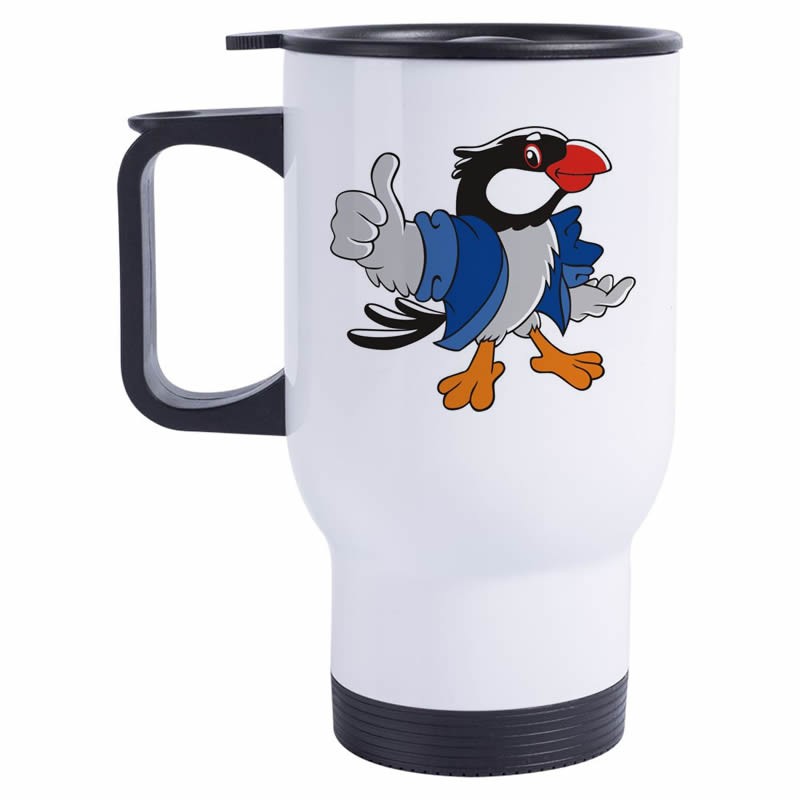 Caneca Térmica, de aço inox, na cor branca, de alto brilho e qualidade.